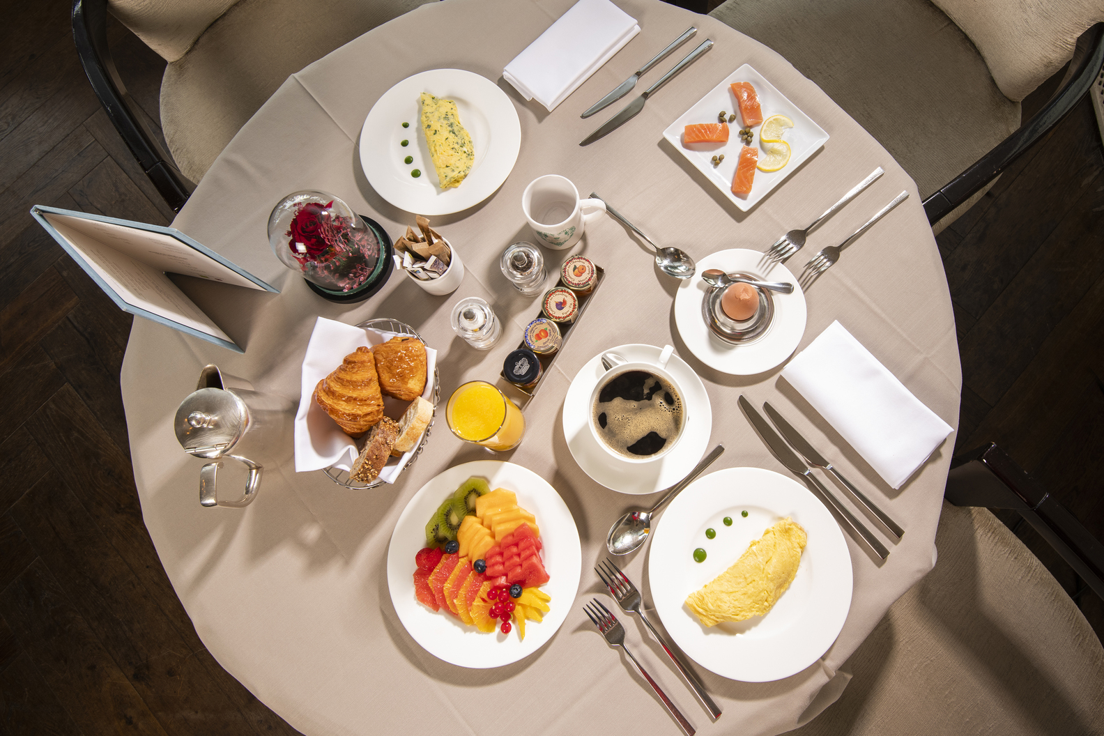 Gönnen Sie sich einen genussvollen und entspannten Moment an unserem reichhaltigen und raffinierten Buffet, das klassische Frühstücksspezialitäten mit den Freuden eines leichten Brunchs verbindet.