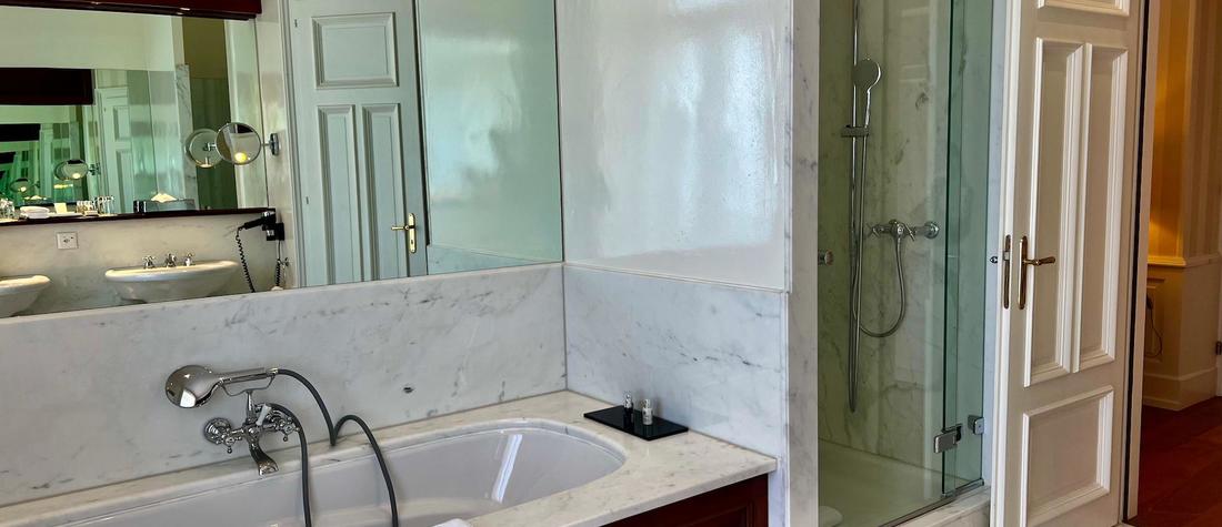 - Badezimmer mit Badewanne und Dusche