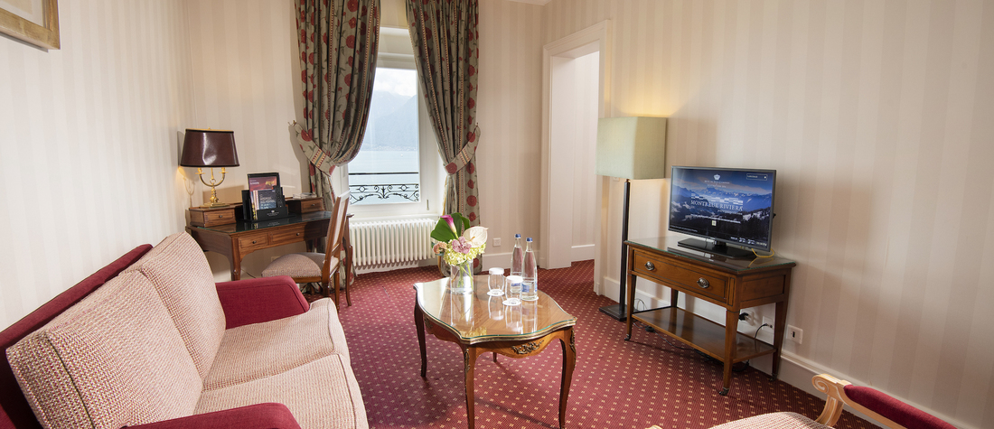 Das Superior-Seezimmer bietet einen atemberaubenden Blick auf den Genfersee und die Alpen. Es befindet sich im obersten Stockwerk unseres Hauses und ist geräumig sowie außergewöhnlich.
